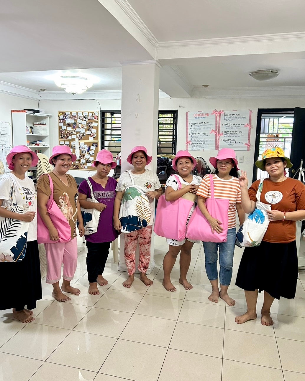 現在、ココラボではマニラの貧困地区に暮らす若者や母親を対象に、デザインや縫製の技術を無償で提供しています。さらに、教育機関としてだけでなく、工場としての役割も担い、企業の制服やTシャツ、ポーチの製造も行っています。